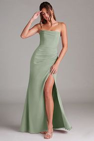 Shop sage green formal dresses in satin & chiffon—floor-length & midi styles for weddings, galas & evening events. Flattering fits, ships in 48hrs.
