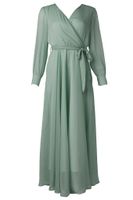 Discover special sage green long sleeve dresses, from elegant silk gowns to floral print wrap dresses. Perfect for weddings, special occasions, and more.