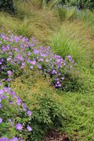6&7 Big root geranium ( geranium macrorhizum) this is another perennial I use it in a place with the less care but taught and can't water or enough sun area, like a garden I help with a Norwegian maple and linden and after I pull out all the ivy and periwinkle, they spread fast, sun or shade , as long as it is a cool condition on the ground ( give them tree leaves in fall just cover them ) and water every two week, they are fine and they also has a pink/purple color flowers in spring, they are good looking when you plants in a long path , a big tree , a slope and a corner with a big plants or small tree .