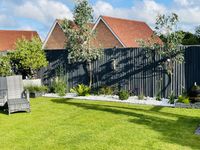 I’d go for shrubs, mainly evergreens. Stuff like choisya, fatsia, sarcoccoca, cardoons, smoke bush, ninebarks, several hydrangeas, flowering currant. Maybe put some salvias in the sunny bits, some acers where it’s shady. Roses do well on clay. I’d suggest painting or varnishing the fences and sending some climbers up.
