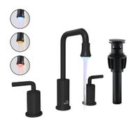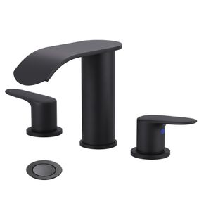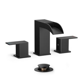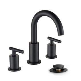 Bathroom faucet Matte black Widespread 2-handle Mid-arc Residential Handle Bathroom Sink Faucet with Drain with Deck Plate