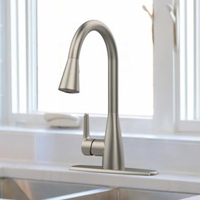 Whether you prefer brass kitchen faucets, black kitchen faucets, stainless steel options or something else, our faucets come in a range of stylish finishes to choose from. We also offer a variety of quality brands, like Moen, Delta, KOHLER and more. In addition to considering features like pull out or pull-down sprays, think about faucet type.