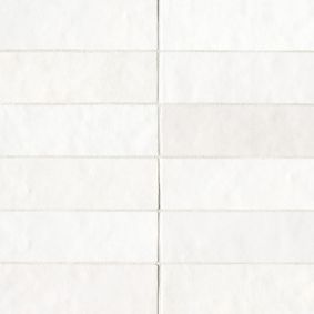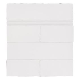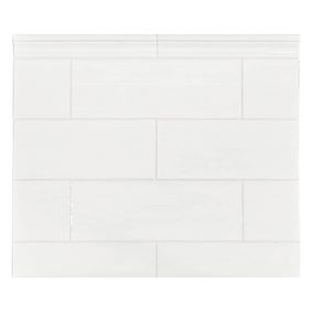 Satori Pearl White 3-in x 12-in Glossy Ceramic Subway Wall Tile #1001-0211-0 · Style Selections Farmhouse Chestnut 6-in x 24-in Matte Porcelain Wood Look Plank Floor and Wall Tile #1101350
