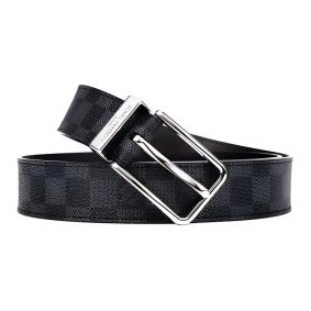 This reversible belt associates the iconic LV Initiales buckle in dark ruthenium with our Monogram Eclipse canvas. Subtly branded, it is a perfect match for the House's Leather Goods and shoes.,