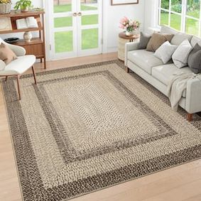 Amazon.com: Deerly Area Rug 6x9 Machine Washable Rugs for Living Room, Moroccan Boho Farmhouse Area Rug with Non-Slip Backing, Neutral Low Pile Indoor Floor Carpet for Bedroom Dining Room, Light Brown : Home & Kitchen