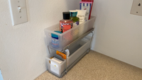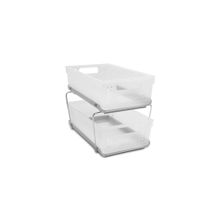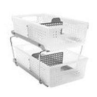 madesmart Mini 2-Tier Organizer, Multi-Purpose Slide-Out Storage with Handles and Dividers for Home and Bath, Frost · Simple Houseware 2-Tier Under Sink Organizer Storage Tray with Hooks, White · Simple Houseware 2-Tier Narrow Basket Drawer Cabinet Pull-Out Organizer, Clear