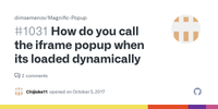 So I'm still relatively green to coding, and for my first professional assignment, my manager wants me to display an iframe in a lightbox/popup. I've decided to try and use either Magnific-popup or Lightbox2, whichever works really.