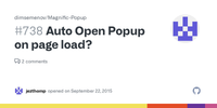 Answer from bbone on Stack OverflowIf you're using jQuery you could just listen for the window load event and then call the open method for your Magnific Popup like so: