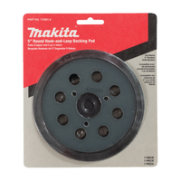 The 5 in. Round Hook and Loop Backing Pad is a replacement pad for use with the Makita 5" Random Orbit Sanders. It features a foam body attached to a hard plastic backing plate. It also has a sturdy hook and loop style bottom for use with hook and loop sandpaper. This pad has eight vacuum holes and is 5-inch in diameter.