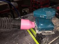 August 8, 2017 - When people are tossing their relatively new upright vacuums I stop and grab the flexible hose for the hand attachments. They usually have heavy duty plastic ends that you can shave the outside of or ream the inside of to fit various power tool dust ports. I have 3 or 4 hoses stored for specific tools like my PC hand sanders and my Kreg jig. Cheers Jim ... Hooked up a 3/4" heater hose to the Makita adapter which I connected to the universal vacuum adapter attachment using my heat gun.