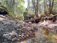 January 18, 2025 - You'll climb through some nice pines along the way, passing the lush areas of Bigcone Springs and Maple Springs (toward the top). The high peaks of Angeles National Forest come into view as you climb. You'll pass another portion of the cutoff trail as you wind up on Maple Springs Road.