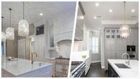 February 13, 2025 - This modern farmhouse kitchen design combines rustic design with modern tastes. The black kitchen islands and iron handles contrast nicely with the stark white cabinets and white subway tile backsplash. Subtle marble slabs like a Carrara marble countertop offer a touch of organic elegance to the kitchen.