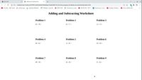 Math Worksheet w/ HTML, CSS, Javascript (Adding and Subtracting ...