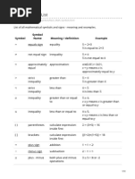 rapidtables.com-Math Symbols List - Free download as PDF File (.pdf), Text File (.txt) or read online for free. The document provides a comprehensive list of common mathematical symbols along with their names, meanings, and examples. It includes symbols for operations, relations, sets, functions, angles, variables and many other concepts in mathematics.