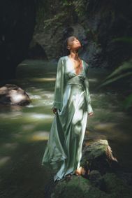 From the emerald green satin maxi dress to ethereal textiles that layer for exaggerated depth, such as tulle, organza, chiffon, voile, georgette, and chiffon, there’s also contouring cuts too. Think Compact Stretch, creating statuesque silhouettes that boast four-way support for a bespoke fit. From column cuts to the emerald green maxi dress with sleeves, find your tonal piece below.