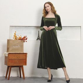 Dark Green Bridesmaid Velvet Dress High Quality Fabric ...
