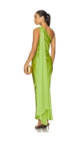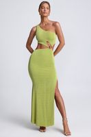 Hardware Detail One-Shoulder Maxi Dress in Olive Green