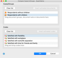 March 2, 2022 - The MAXQDA function Compare Cases & Groups allows you to easily compare coded data (qualitative data) and code frequencies (qualitative data transformed into quantitative data) for cases and groups. From the โDocument Systemโ, you can include documents or focus group speakers as cases and document groups as well as document sets as groups in the comparison. A group comparison for code frequencies is performed as follows: Open the function Analysis > Compare Cases & Groups > Quantitative...