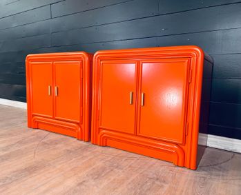 Pair of Angraves Mid Century Rattan / Cane Nightstands / Bedside Tables, English, 1970s Pair of mid-century rattan / cane nightstands / bedside tables by English company, Angraves, ... ... Pair of Merton L. Gershun for Dillingham "Esprit" MCM Walnut Nightstands