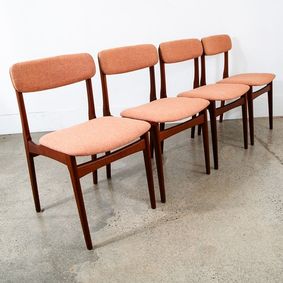 Mid Century Danish Modern Dining Chairs Set 4 Teak Wood Salmon Peach Vintage McmOpens in a new window or tab