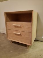 r/woodworking on Reddit: Oak midcentury modern nightstand with plenty of storage room!