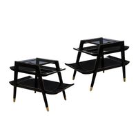 Pair of Midcentury Modern Two-Tier End Tables designed by Lou Hodges in Solid Ebonized Oak. Cantilever design with floating shelf and smoked glass inserts. Small wood blemish on one table. $4,200 · Pair of Modernist Waterfall Brass and Glass Side Tables by Leon Rosen, 1970s for Pace Collection.