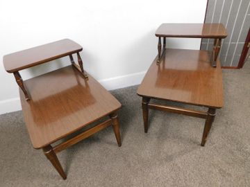 Pair mid-century two-tier end tables to maximize functional surface area while adding timeless style and warmth to your living space. Quick View ... Incorporate two-tier side tables like these to add both style and functional layered surfaces to mid-century inspired living spaces.