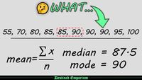 Mean is all numbers added together then divided by how many numbers there are. Median is the number in the middle when you arrange a set of numbers from least to greatest. Mode is the number that appears most often in the set More on reddit.com