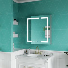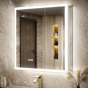 Elevate your bathroom with this luxury LED medicine cabinet featuring a sleek two hinged soft-close doors, anti-fog mirror, and built-in dimmable lighting (2700K–6500K). Designed for both recessed and surface mounting, it includes dual USB ports, power outlets, motion-sensor interior lighting, and adjustable tempered-glass shelves.