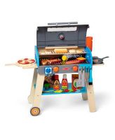 Fire up pretend play with this perfectly kid-sized wooden barbecue grill, smoker, and pizza oven play set Pour pretend wood chips into the smoker box in the back of this lift-top grill. Budding young chefs three and older will love creating make-believe barbecue favorites like steak, chicken, burgers, hot dogs, corn -- and even play pizza Place wooden play food "uncooked" side up on the grill, griddle, or side burner, set the built-in timer, pretend to baste, then flip with the included utensils to see grill marks Create a yummy wooden pizza with toppings, then slide it from the pizza paddle o