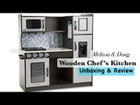 Melissa & Doug Wooden Chef’s Pretend Play Kitchen features a refrigerator with a working ice dispenser, oven, microwave, sink, ample storage, and FSC certification, suitable Free Shipping!