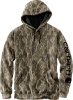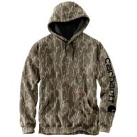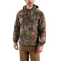 From job site to weekend projects, this men's sweatshirt offers easy-wearing warmth. Carhartt durability and familiar hoodie comfort mean you can swing a hammer or relax with equal ease. It's features all over Mossy Oak® Original Bottomland® Camo and a Carhartt graphic on left sleeve.