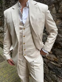 Take your measurements at home using our simple guide or input your height and weight. We’ll create a precise fit with help from our tailoring algorithm and expert craftsmanship. ... Use our 3D linen suit configurator to bring your perfect summer suit to life. Customize everything from cut and color to buttons and lining. Create a casual linen suit for men... Design your linen suit online at Hockerty ✓ 100% Made to Measure ✓ Breathable linen fabrics ✓ Custom fit guaranteed ✓ Free shipping worldwide Black Suit