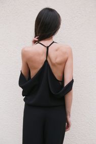 I want to wear this back jumpsuit and pair some nice floral heals with it to lighten it up a bit (see images). Is this acceptable for a cocktail attire wedding? Wedding is at 4pm if that matters. The material is very sleek high quality—it’s not cheap cotton or anything. I could also do the same jumper in blue (with different heels). Is wearing black to a wedding stick kind of ick?