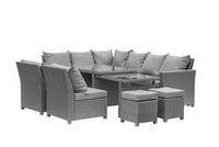 This sectional seating set will easily add style to your outdoor space. The sectional is perfect for entertaining, lounging, or sunbathing. Its powder-coated steel frame is rust resistant and sturdy. The stylish slatted top table completes this elegant collection.