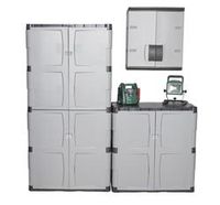 Built this outdoor storage cabinet with a hidden tool tray in the top. Poplar and Yellow Pine