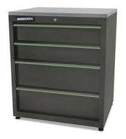 The Masterforce® 4-Drawer Base Cabinet works great for your garage storage needs! It features the patented Raise and Release™ drawer latching system, full extension 100 lb. ball bearing drawer slides, heavy-duty 24-gauge steel construction, and 1" corrosion resistant electroplated metal worktop. This cabinet also includes a locking system to keep your things safe and secure. The two top drawers on this base cabinet measure 27-5/16" W x 5-13/16"H x 22"D. The bottom two drawers measure 27-5/16"W x 8-11/16"H x 22"D.