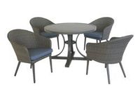 The Bayside five-piece dining set combines sleek design with outdoor durability, making it a stylish addition to any patio or garden. The chairs feature plush cushions for added comfort, and the table's surface is easy to clean, making it perfect for everyday use or special gatherings. With its timeless look and practical design, the Bayside dining set enhances your outdoor space while providing a comfortable setting for dining and relaxation.