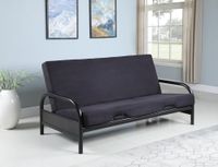 Basic Black Metal Futon Frame by Coaster Basic full size metal futon frame has both style and grace. This frame is front operated for easy conversion. Dimensions: Sofa Position (including arms): 79.5"W x 39"D x 31"H Bed Position: 75"W x 54"D x 24.5"H 29 Inch Arms (Light Duty) Also available with 39 Inch Armsand as a frame and mattress set. Mattress is sold separately.