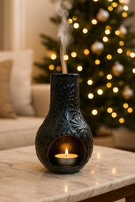 Crafted for both incense sticks and cones, this mini chimenea creates a captivating display as the scented smoke cascades downward, creating a serene waterfall backflow incense effect.