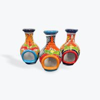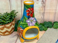 These beautiful Talavera chimenea is the outstanding ceramic art of southern Mexico. With intricate floral patterns and brilliant colors, Talavera pottery is beautiful and adds life to any setting. · This chimenea is hand painted, glazed and fired and is perfect for southwest home decor. This unique art also makes a great accent piece for any southwest or hacienda style home room or office. · Measures approximately 12" wide and 19.5" tall. Acutal chimenea shown.