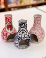 Perk up your patio with this charming Talavera Chiminea Candle Holder! Each chiminea is hand painted with traditional, colorful Mexican designs. Our authentic candle holder will add a splash of color to your garden! Plus, this multi functional piece double as a planter with its convenient drain hole. Made in Dolores Hidalgo, Mexico.