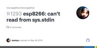 Conversely, on ESP32, sys.stdin is a FileIO with sys.stdin.buffer available for use.