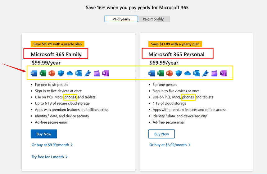 As you can see from the above information, whether you have a Microsoft 365 Family or Personal subscription, you have the benefit of using Word and Outlook.
