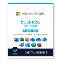 Microsoft 365 Business Standard 1 Year | 1 User (5 PCs/Macs-5 Tablets-5 Mobile devices) - Digital Licence