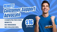 Remote Customer Support Advocate - $16/Hr., No Weekends, Computer Provided