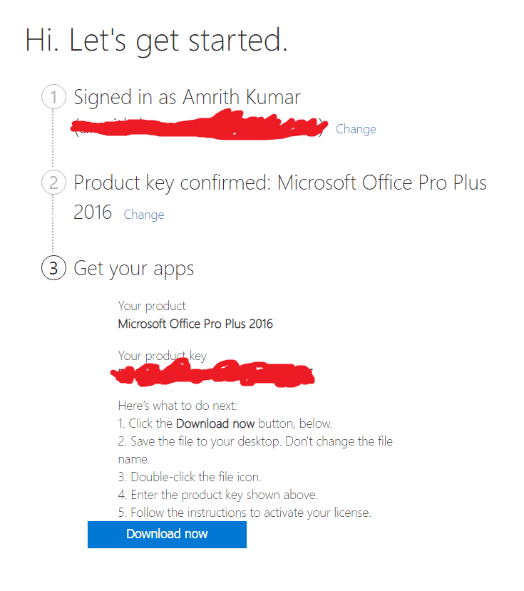 That is the correct steps to get a download. Any change you have a copy of the download saved anywhere? It would be called officesetup.exe.