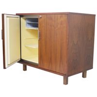 Vintage 1960's Mid-Century Modern Walnut Mini Bar Fridge Liquor Cabinet at 1stDibs | mid century modern mini fridge, liquor cabinet with fridge, bar cabinet with fridge