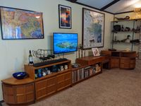 Post notes: 1st Photo: The cabinet is now in the other house dad built for my mom and me. Now my wife and I live there. 2nd Photo; My grandfather's 70th birthday party, Jan 24, 1967. He’s wearing the plaid shirt and cut off in the photo of my aunts and cousins. 3rd Photo dad with my uncle, grandmother, and her caregiver, 1991. Fun fact: My grandmother was a cliff diver back when she was in Italy. This is the matched unit, made at the same time, and also saved from their house. My family used it as a TV console. 1960s portrait of Mom on wall. (Ignore the tripod lamp, it’s modern.)
