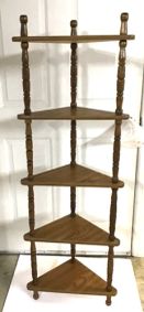 Vintage MCM 60s Corner Shelf Wooden 3 Tier Accent Table Spindles Screw Apart Opens in a new window or tab ... Pair of Vintage Mid-Century-Modern Corner Peg Shelves Carved Pyrography BowsOpens in a new window or tab